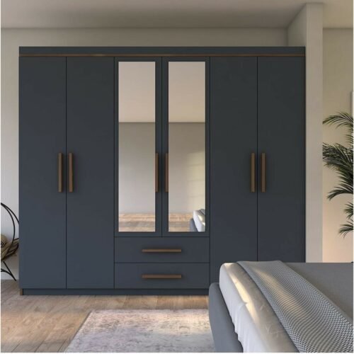 Metalia Gm 081 Favorite 6 Kapılı Aynalı Beyaz Siyah Kulplu Gardırop