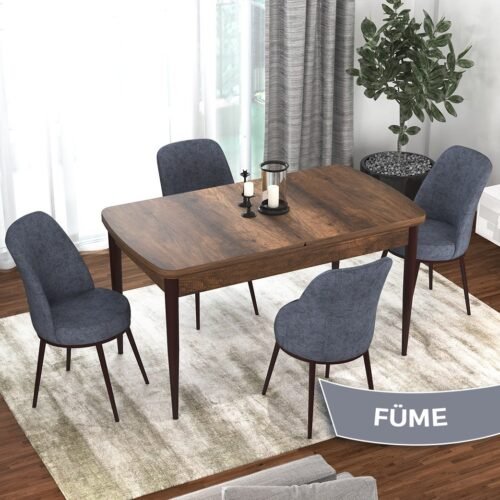 Canisa Concept Kor Serisi Barok Ahşap Desen 70X114 Açılabilir Mutfak Masa Takımı, 4 Adet Sandalye