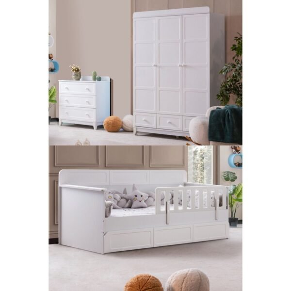 Setay Sports Çocuk Odası Takımı, Beyaz – Jaguar Arabalı Yatak – Dolap – Masa – Şifonyer