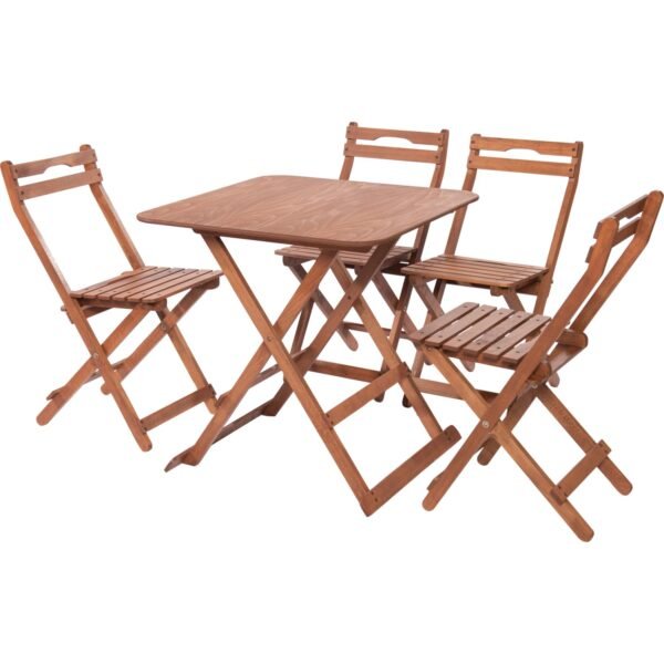 Modermo Ahşap Katlanır Masa (108) + 4 Adet Ahşap Katlanır Sandalye (110)
