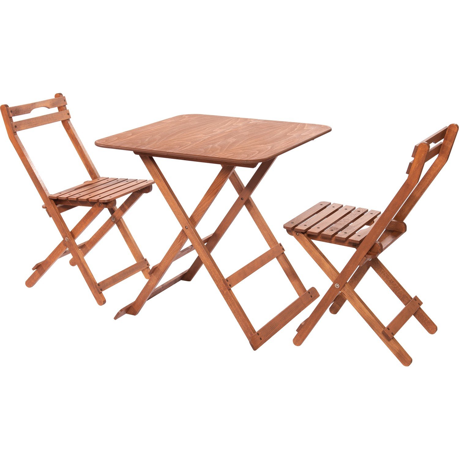 GRUP-M - 108 - MODERMO AHŞAP KATLANIR MASA(70*70)cm(1 Adet) + 110- MODERMO AHŞAP KATLANIR SANDALYE(2 Adet) 1 Adet 70*70 cm. Masa ve 2 Adet 35*30 cm. Sandalyeden oluşmaktadır. Masa yerden yüksekliği: 70 cm. Sandalye yerden yüksekliği: 44 cm. Masa katlandığında ölçüleri: 85*70*6 cm. Sandalye katlandığında ölçüleri: 95*35*6 cm. Masa Üstü 10 mm. 1.sınıf kayın kaplamalı MDF‘den ayakları 1.sınıf yerli kayın ağacından üretilmiştir. Sandalyenin tamamı 1.sınıf yerli kayın ağacından üretilmiştir. Bağlantı aksamları kalın metal perçinlerle presleme yapılarak üretilmiştir. Ayaklar üzerindeki ahşap kayıtlar yüksek mukavemetli 1.sınıf ağaç tutkalı ile birlikte çelik vidalar ile vidalanmıştır. Bu sebeple sallanma ve oynama yapmaz. Tüm parçalar insan eline zarar vermemesi için pahları alınarak otomatik profil makinesinden çıkarak son halini almıştır. Ceviz renk çürümeyi engelleyen ve küf, mantar ve böceklere karşı koruma sağlayan koruyucu boya içerisine bandırma yapılarak boyanır. Ürünlerimiz T.C. Sanayi ve Ticaret Bakanlığından 2 yıl garantilidir. Ürünlerimizde kullandığımız kayın ağacı,Orman Genel Müdürlüğü sertifikalıdır. Kayın ağacı oldukça Sert dokusu nedeniyle uzun ömürlü ve sağlamdır. Ürünlerimizde 1.sınıf nem oranı %12’ye düşürülmüş yerli kayın ağacı kullanılmaktadır. Bu sebeple kesinlikle eğilme ve çürüme yapmaz. Temizliği hafif sabunlu ve nemli bezle yapılabilir. Özel bir bakımı yoktur.